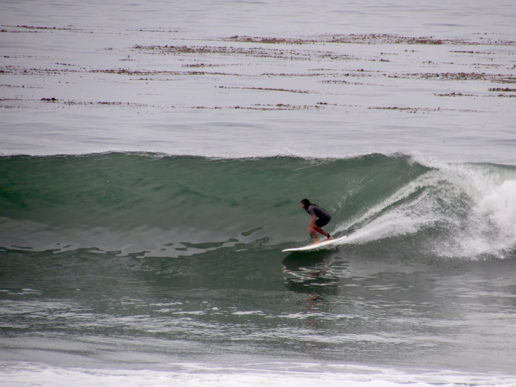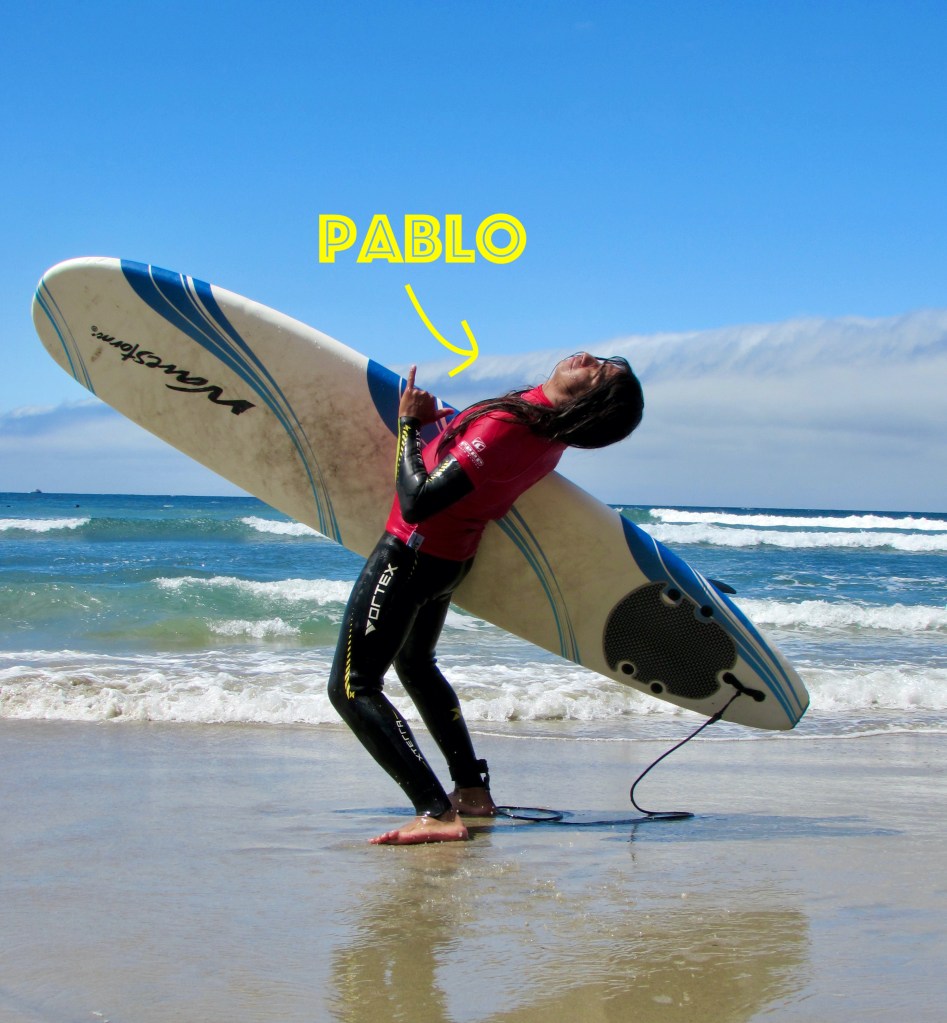 Watching Pablo surf gives fresh meaning to that line from Walt Whitman’s poem, “I too am not a bit tamed . . . I sound my barbaric yawp over the roofs of the world.” (I never knew what a “barbaric yawp” actually sounded like until I met this guy.) Even on cold, windy days, Pablo is always stoked to paddle out in search of “la ola grande” or a “happy wipeout day.” He brings the kind of energy that changes the atmosphere of a lineup because people immediately recognize it’s authentic.