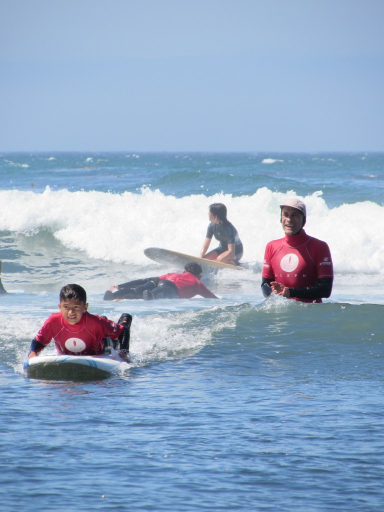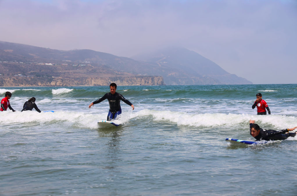 The surf camp was a stretch in scale from our usual small group, local outings. It required lots of careful planning and collaboration. Finding a suitable location for a large group away from rip currents and city contamination required some scouting and extra driving. The camp also presented a leadership opportunity for two of the older boys who have now been surfing with us for about a year to work alongside us as assistant instructors. Uziel and Nahum crushed two very full back-to-back days hauling gear, pushing new surfers into waves, rinsing piles of wetsuits, and they still found energy to get out and surf during breaks. It’s been so fun to watch them progress and gain confidence in the water. We’re so proud of these guys!