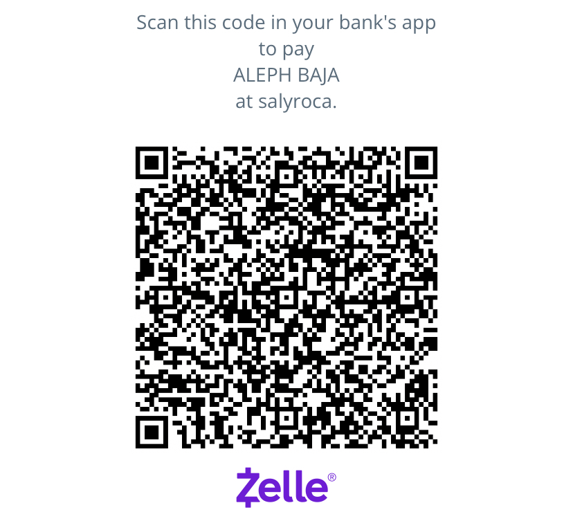- Find us by scanning the Zelle code to the right (from your bank app NOT your phone camera) or search using our Zelletag: “salyroca”